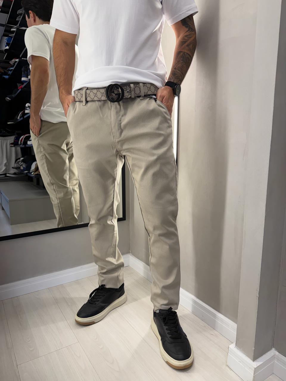 A Calça Slim Areia traz elegância e modernidade para o visual masculino. Com modelagem slim, ela oferece um caimento ajustado que valoriza o corpo sem comprometer o conforto, ideal para quem gosta de um estilo atual e bem alinhado.